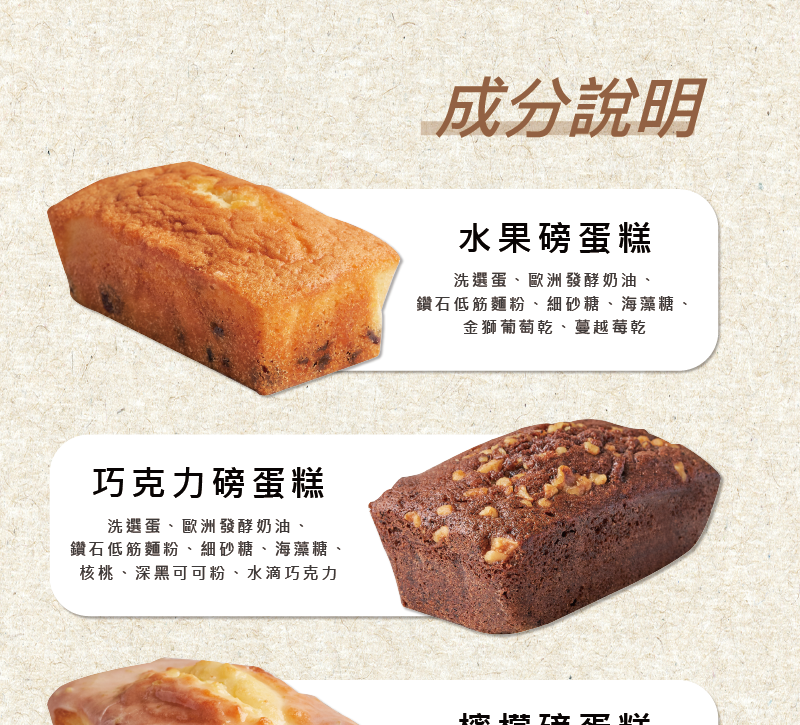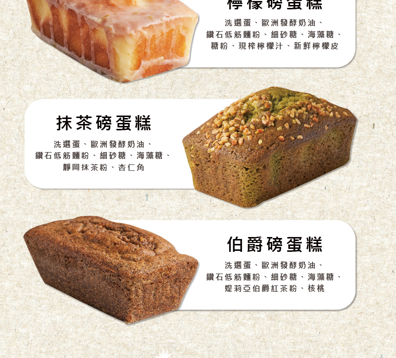 ※磅蛋糕 選 2~9 件享 98 折優惠、10~12件 96 折優惠