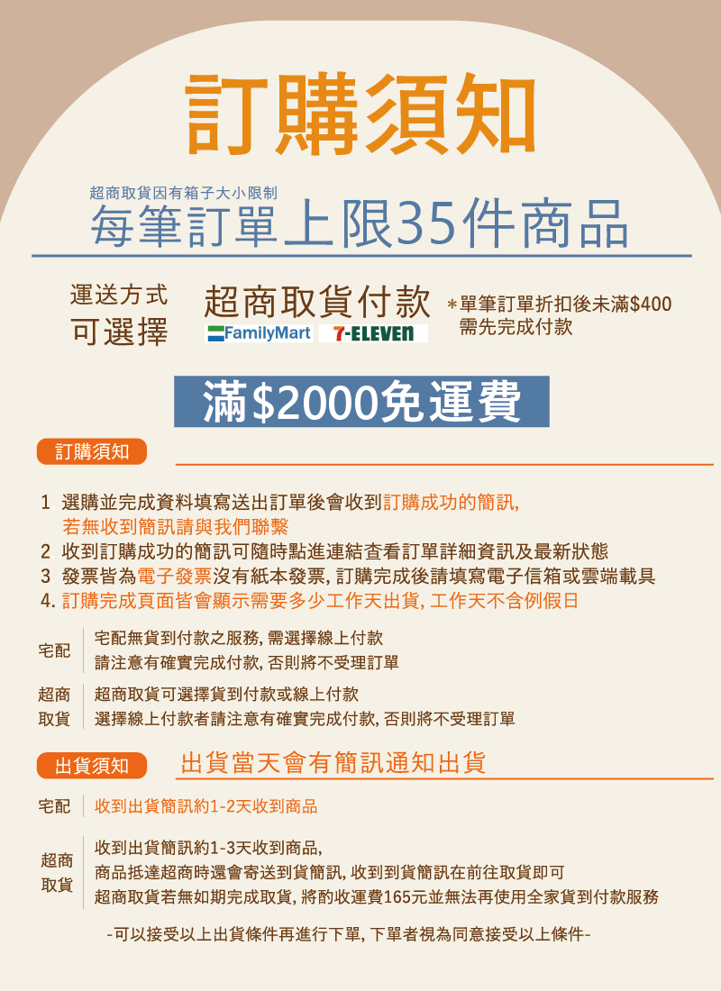 ※單筆訂單滿$2000免運費,未滿$2000,運費$185